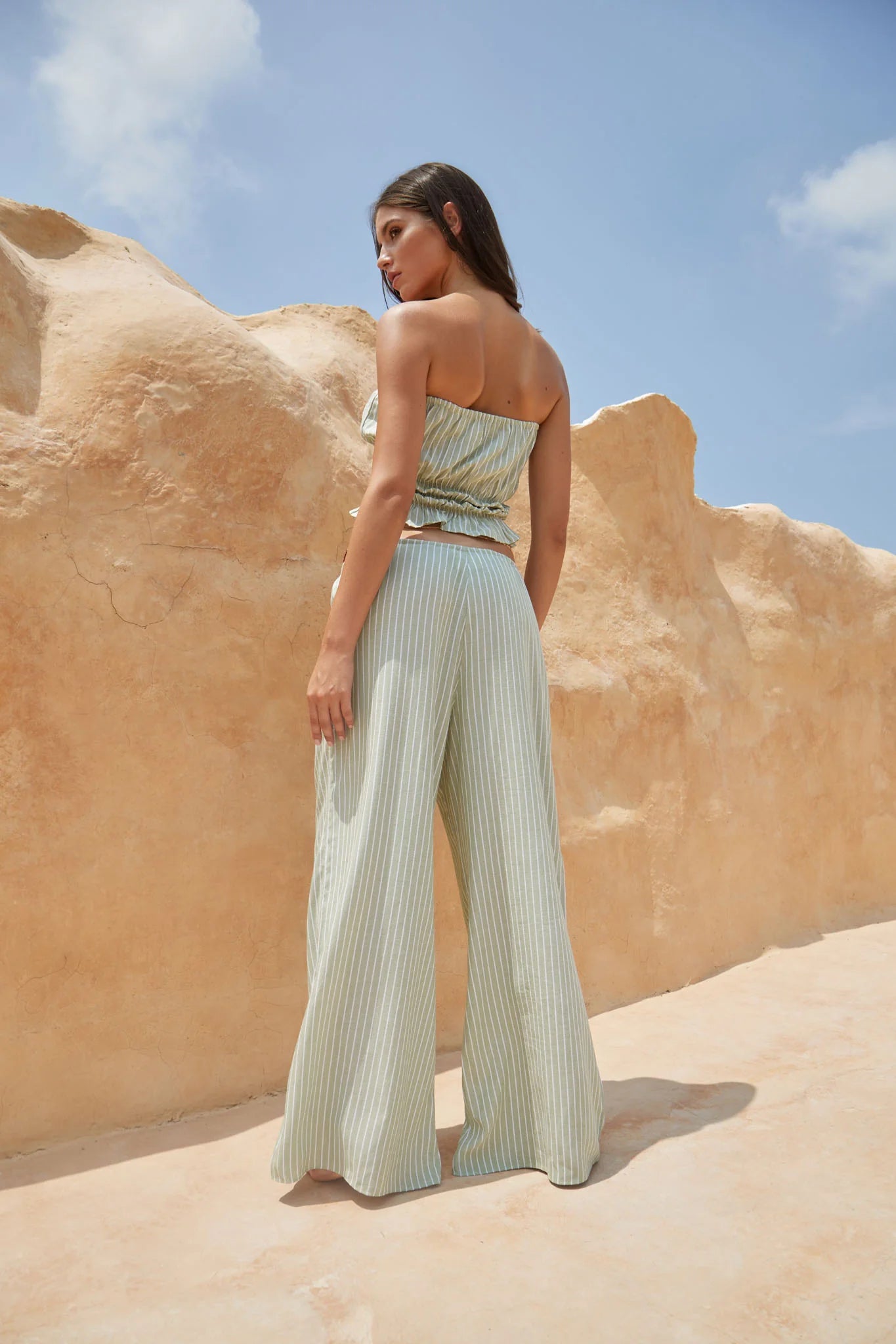 The Talitha Pant in our Sage Stripe is a staple piece, reimagined for ease and versatility.Crafted from 100% Cotton, this lightweight pant features a relaxed silhouette and can be styled to sit mid or low on the waist, offering a flattering, adaptable fit. Best paired with our Ellidy Top or Frank Boobtube.