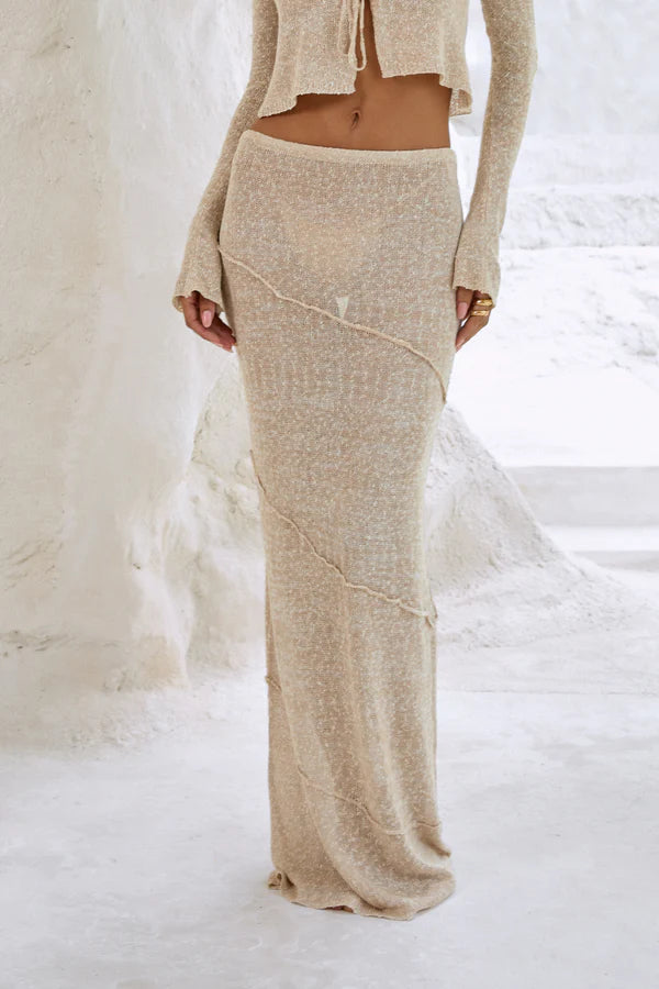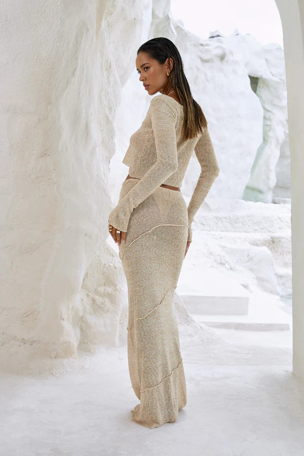 The textured, sheer long skirt in black is perfect over a bikini. Colour match with the long sleeved top for a sleek co-ord feel.