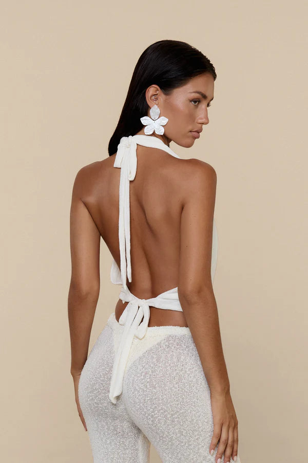 The draped halter top is a timeless addition to your wardrobe, offering elegance and versatility. With its soft, cascading cowl neckline, this halter top highlights your décolletage and adds a touch of sophistication to any outfit. The cropped length pairs perfectly with high-waisted pants, skirts, or shorts, making it ideal for both casual and formal settings.